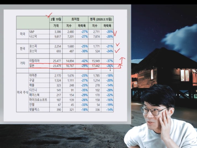 슈카 님께서, 코로나19 상황 이후 1달 동안 어떻게 경제상황(주가)이 어찌 돌아갔는지 리뷰해 주셨다.