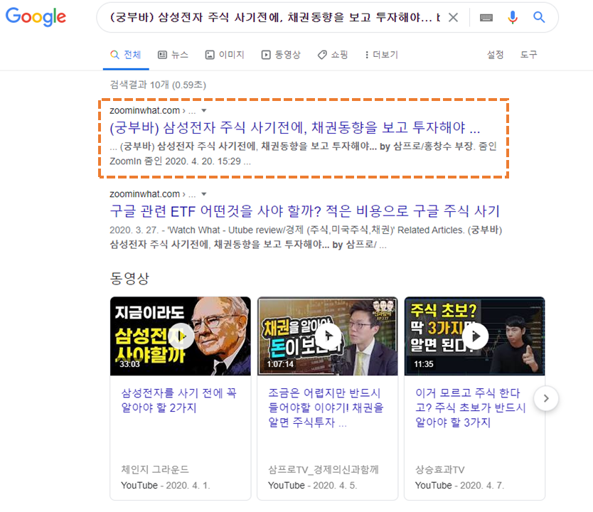 내가 쓴 포스트의 제목으로 검색하면, (1) 내 블로그 제목만 나오고 작은 글씨로 나오거나, 아래처럼 (2) 나오지 않는다.