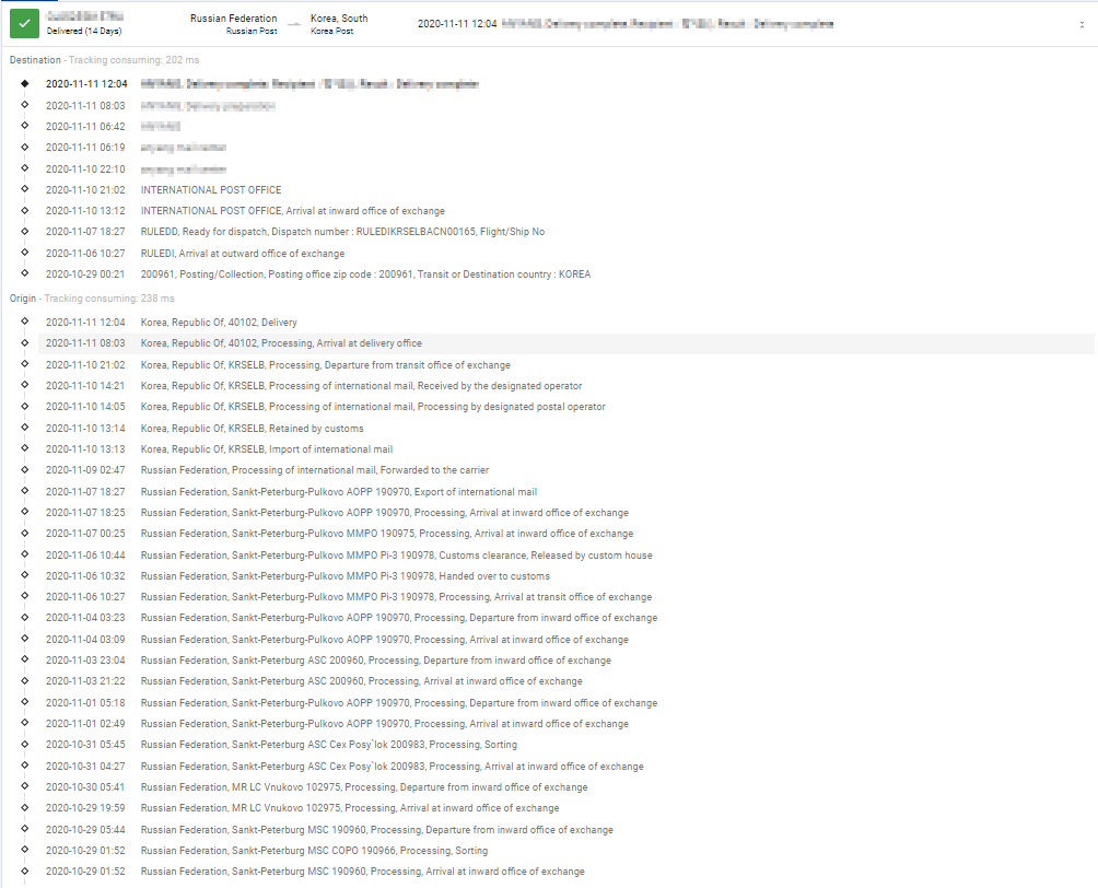배송비에 비해서 좀 많이 오래 걸렸지만... 그것도 Sankt-Peterburg 안에서 도대체 얼마나 많은 기관을 거쳐야 하는지...