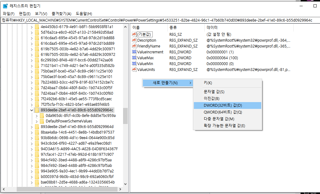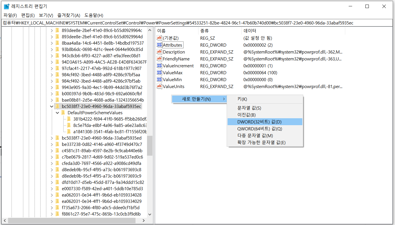 > Attributes 를 2로 만들고, 창을 닫고, 다시 "고급 전원 관리 옵션 설정 변경"을 클릭하면...