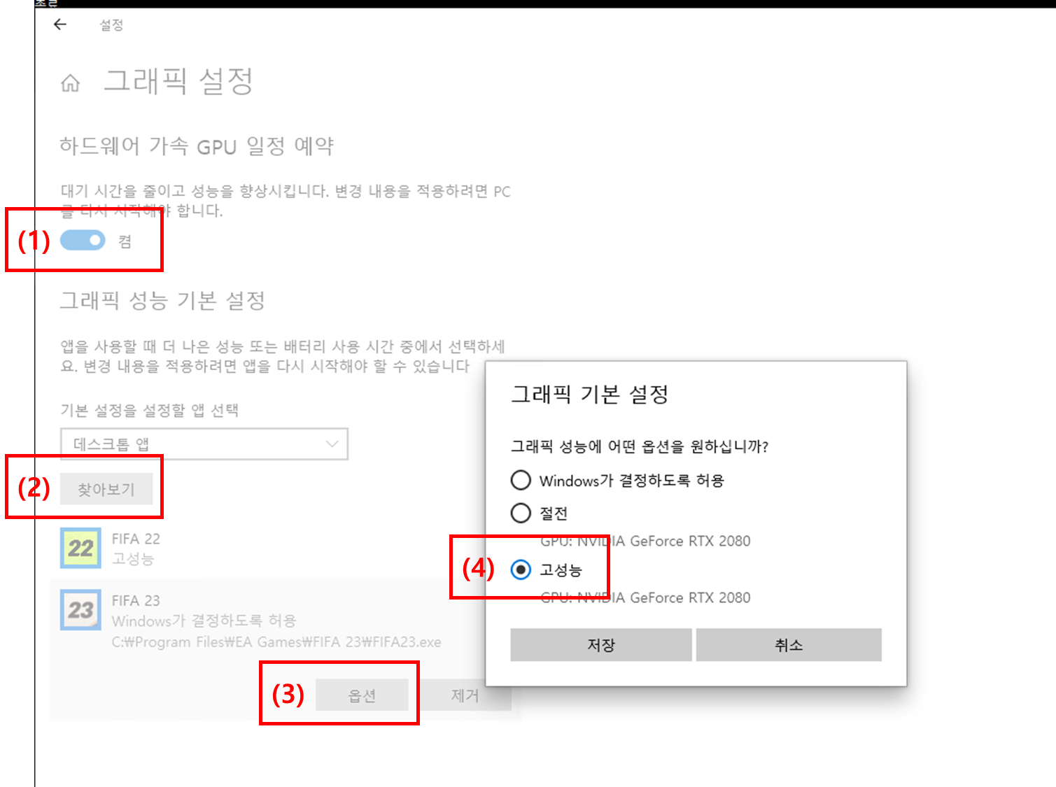 (2) 윈도우 그래픽 설정, 고성능으로 변경하기