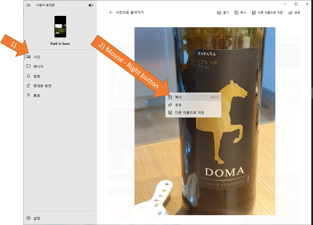 윈도우10 에서, 폰사진 가장 쉽게 가져올수 있는 방법