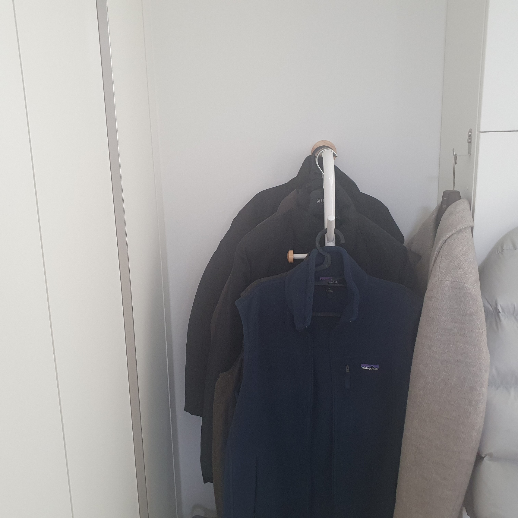 1) (메인 수납 걸이 기준) 남성 외투 3개 정도 수납됨