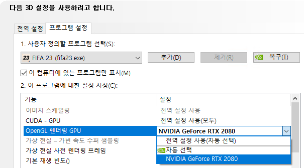(2) 윈도우 그래픽 설정, 고성능으로 변경하기