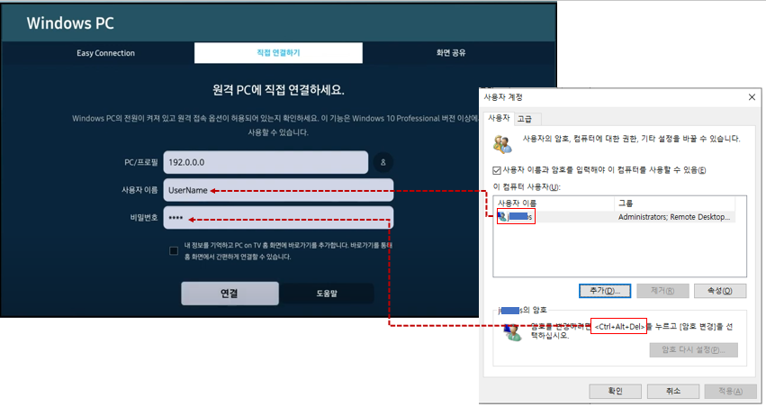 (충격!!+해결책) 무빙스타일 or 삼성TV or 스마트 모니터, 윈도우 원격 PC 연결 안될 때 (feat.사용자 이름이나 비밀번호가 정확하지