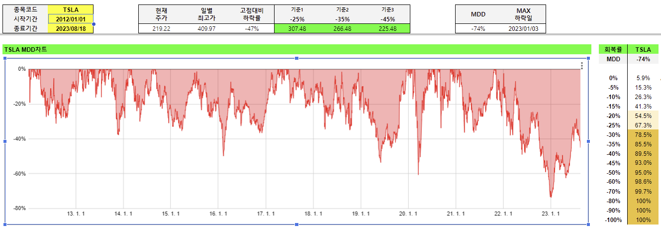 TSLA 투자자 라면, 반드시 체크해야 매수 전략!! 테슬라 리밸런싱+MDD (feat. 서대리님 MDD 차트)